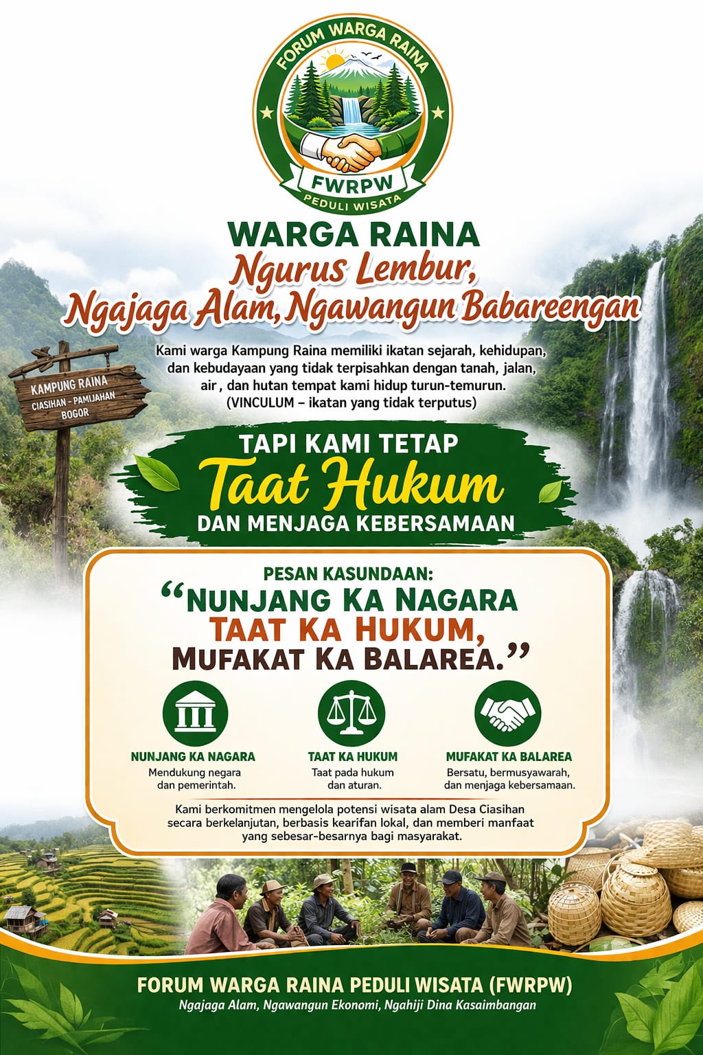 Lembaga Bantuan Hukum (LBH) ADHIBRATA/PRABU Justicia Law Firm menyampaikan hasil kajian awal terkait pengelolaan kawasan wisata hutan di Desa Ciasihan, khususnya di Kampung Raina, Kecamatan Pamijahan, Kabupaten Bogor.