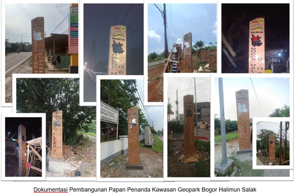 Melalui Dinas Perumahan, Kawasan Permukiman, pembangunan tugu/signgate dan papan penanda ini dilakukan secara bertahap dengan menggunakan anggaran yang bersumber dari APBD Kabupaten Bogor. Pada tahun 2025, pemerintah daerah telah berhasil membangun tugu/signgate dan papan penanda Kawasan Geopark Bogor Halimun Salak yang terletak di beberapa  kecamatan, yaitu: